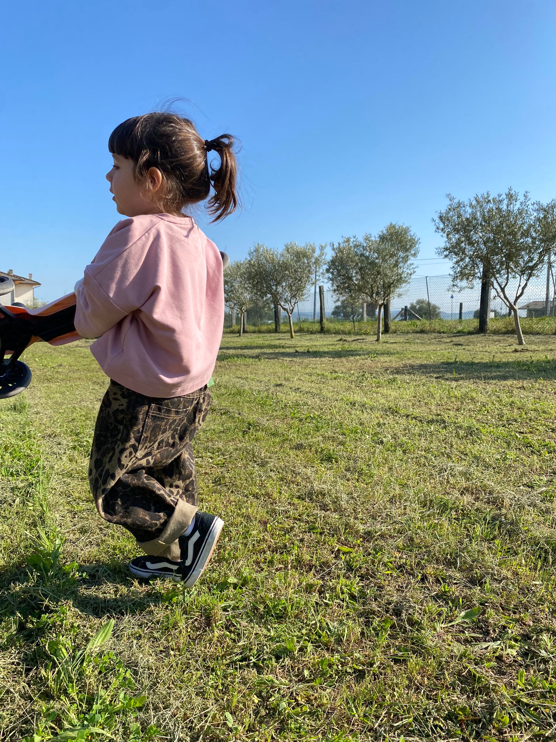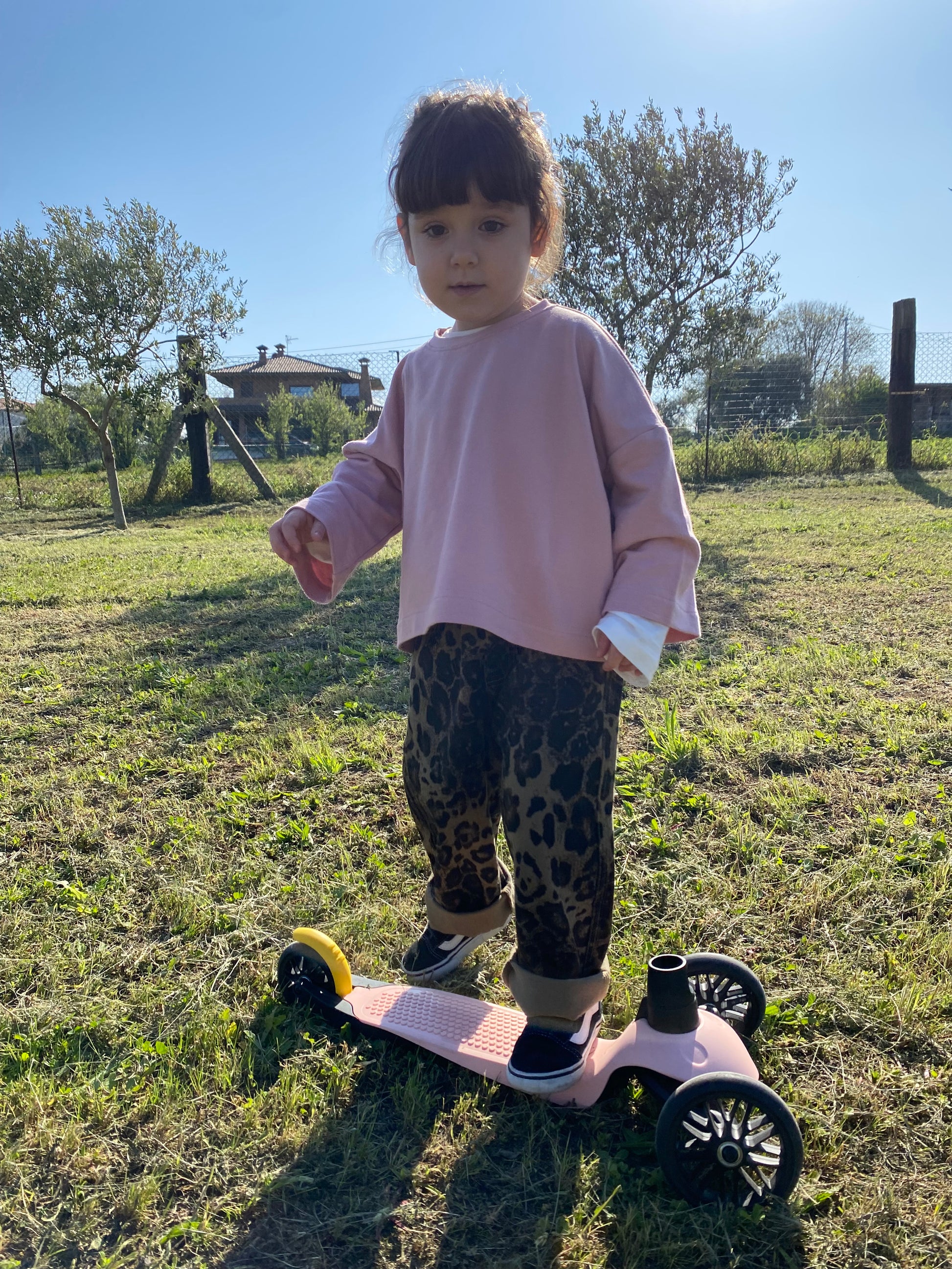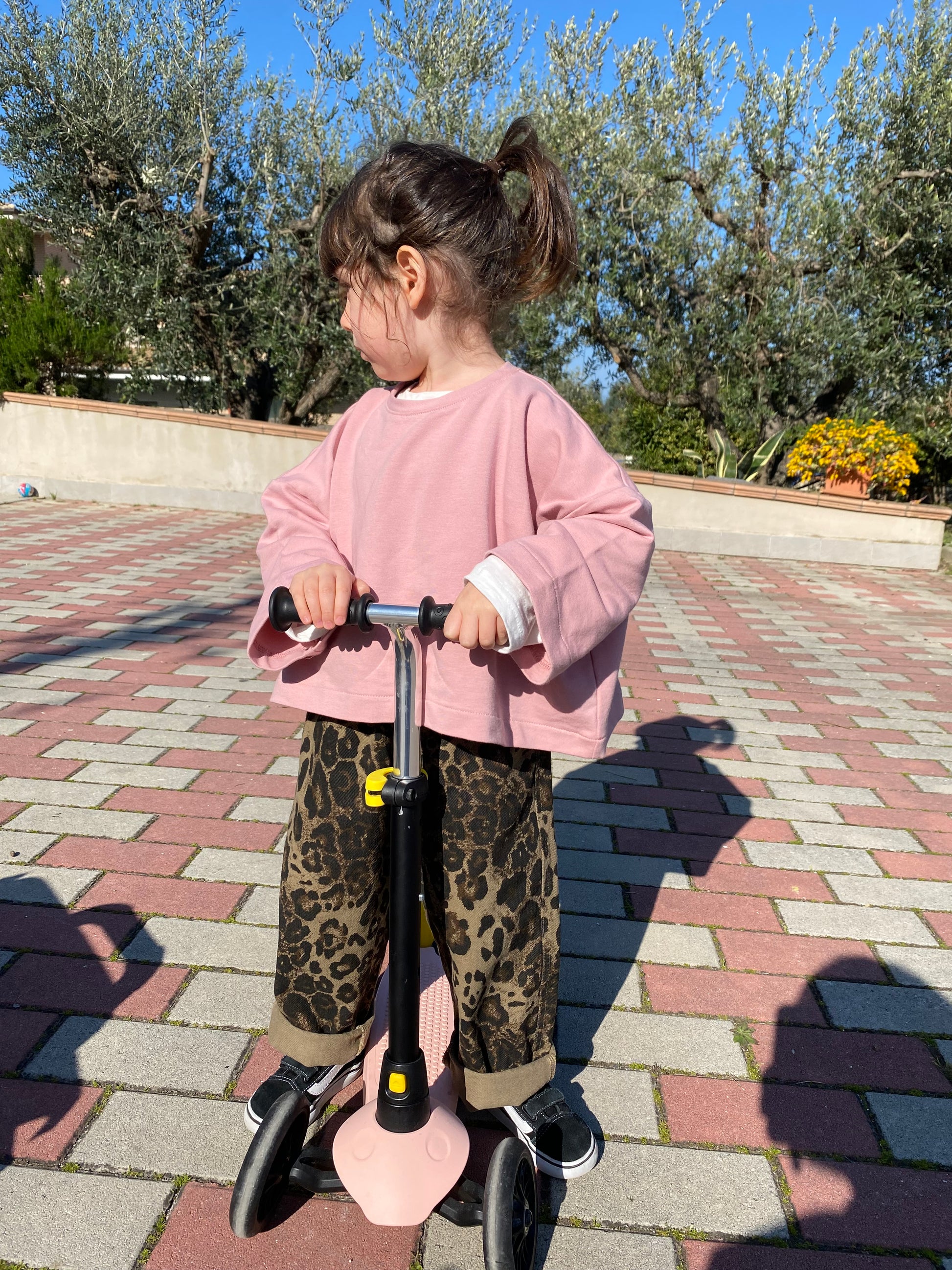 Felpa over rosa antico modello scatoletta. Collo rotondo e maniche lunghe.