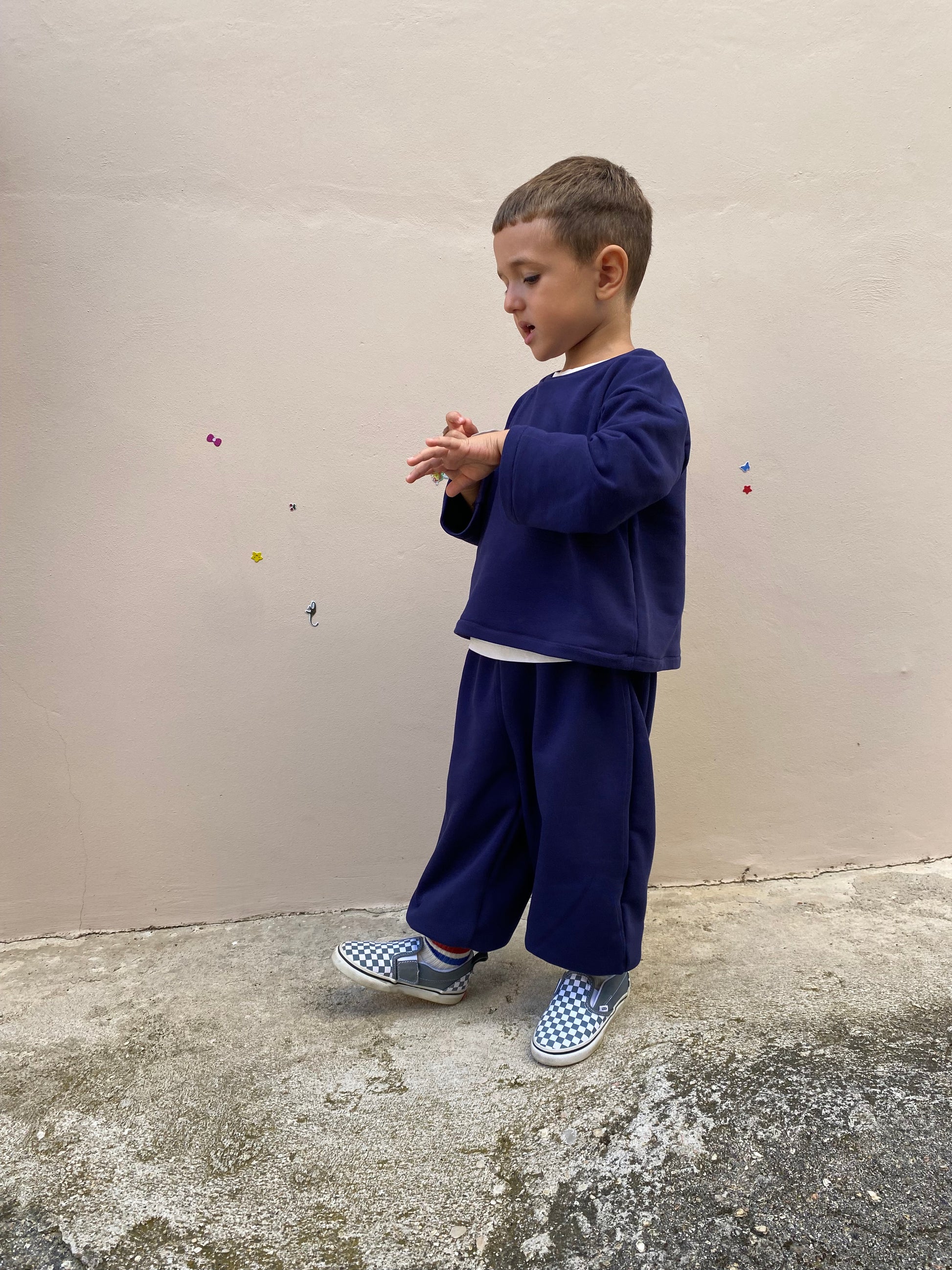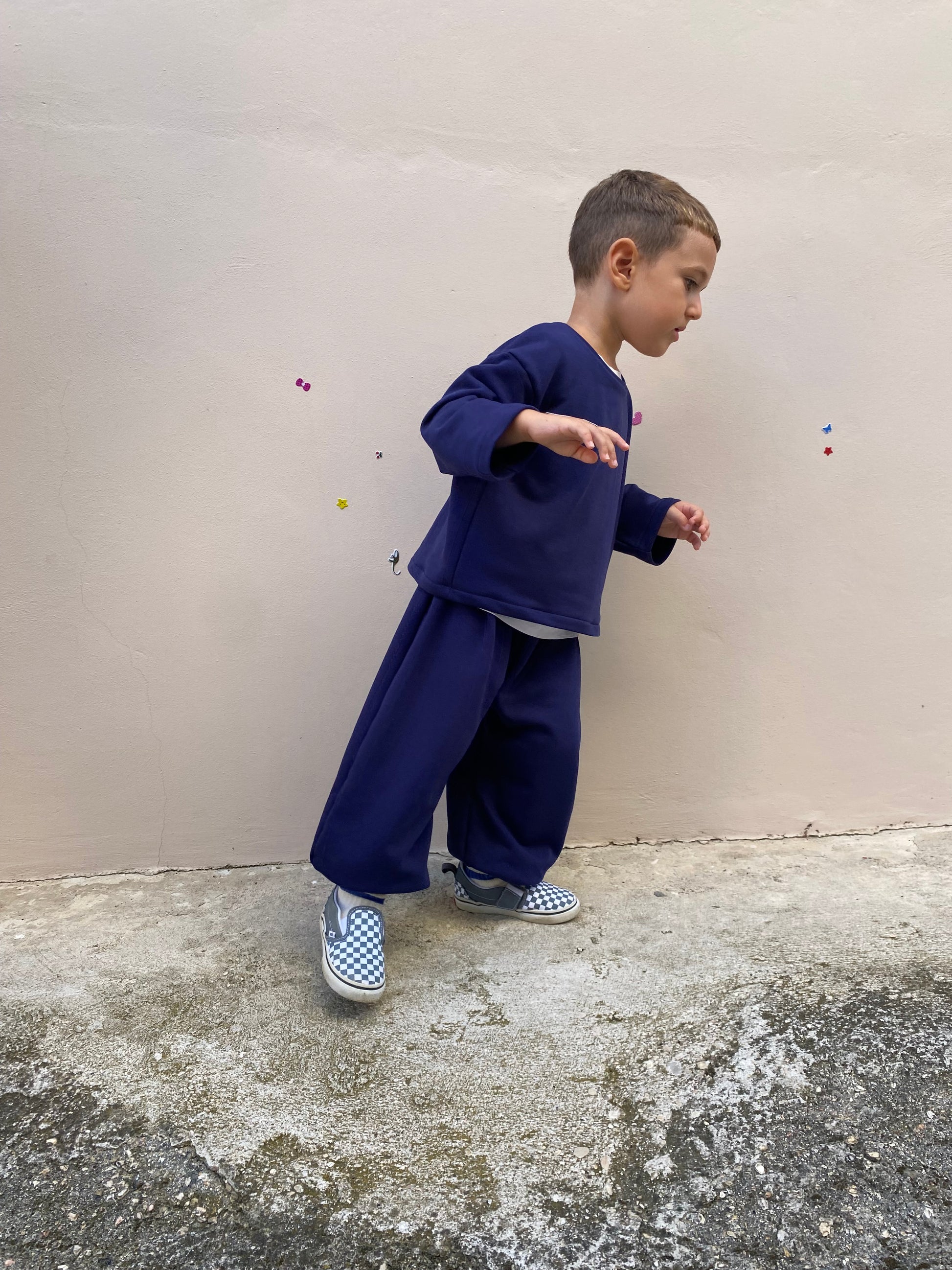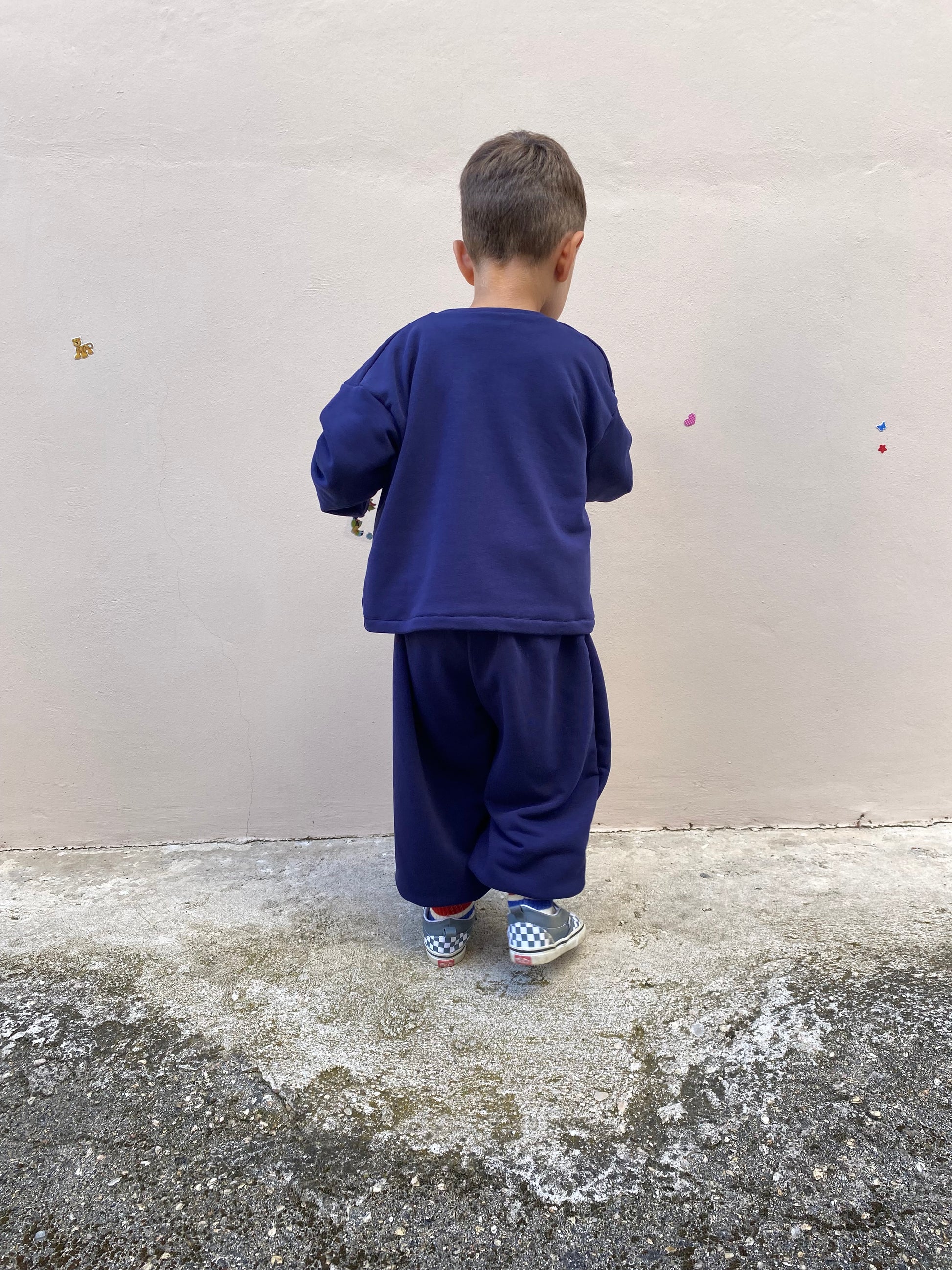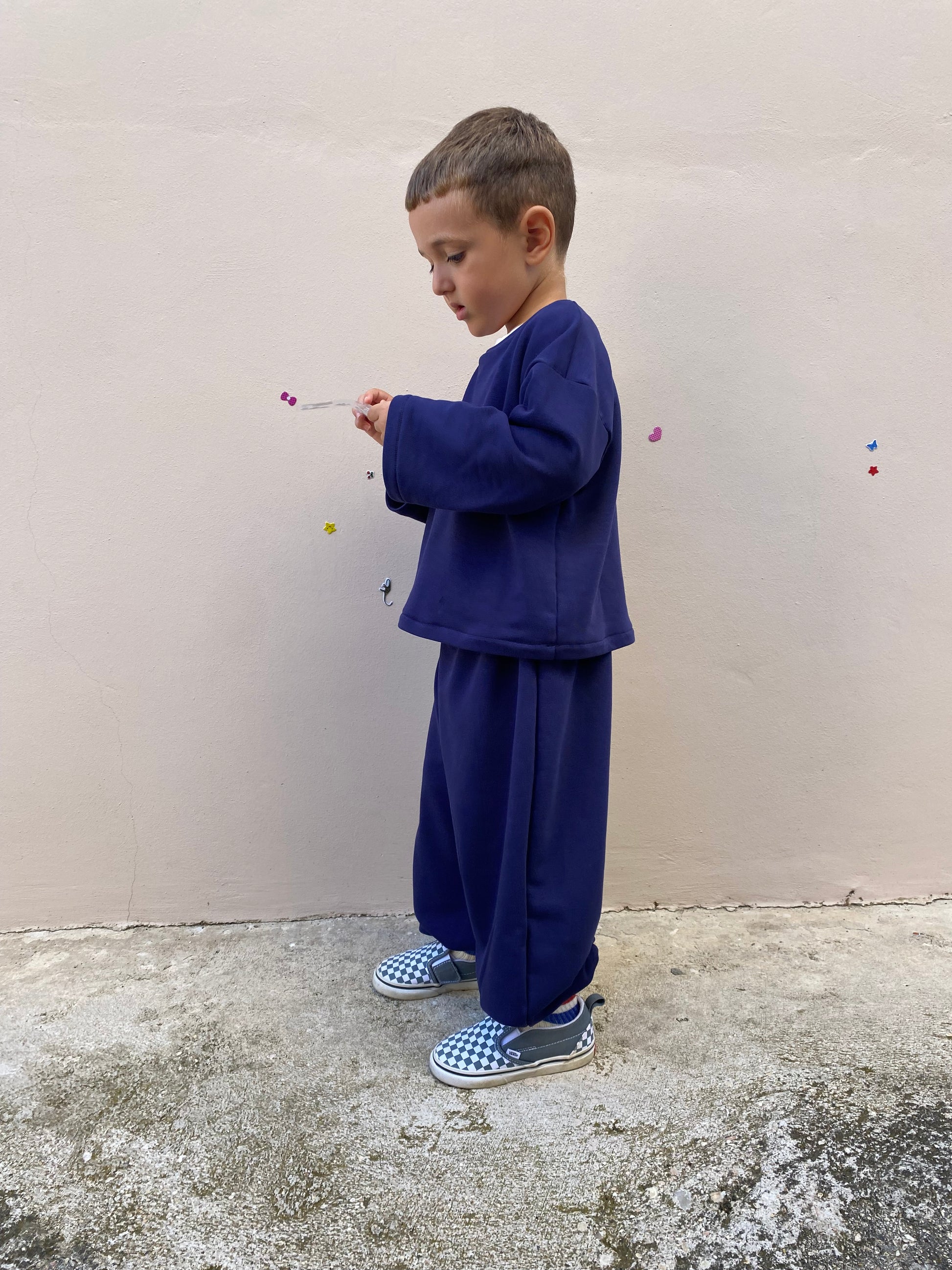 Felpa unisex colore blu Navy in tessuto garzato in 100% cotone.