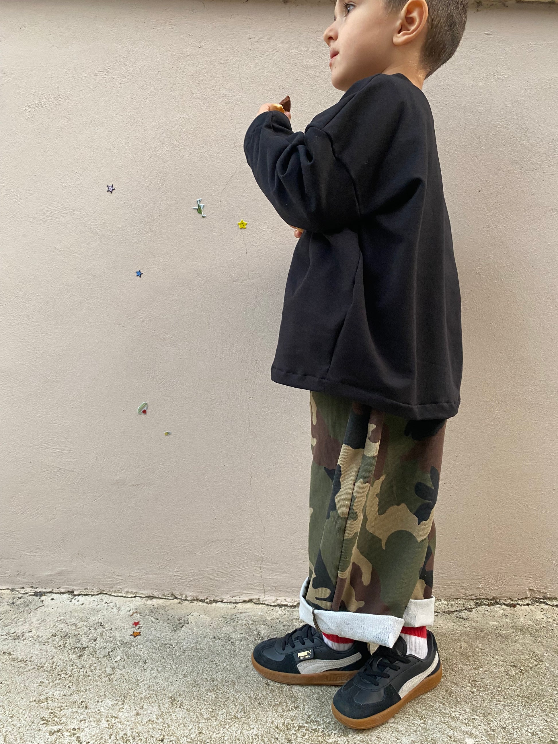 Il bambino in foto ha 3 anni e mezzo ed indossa la 5/6 anni.