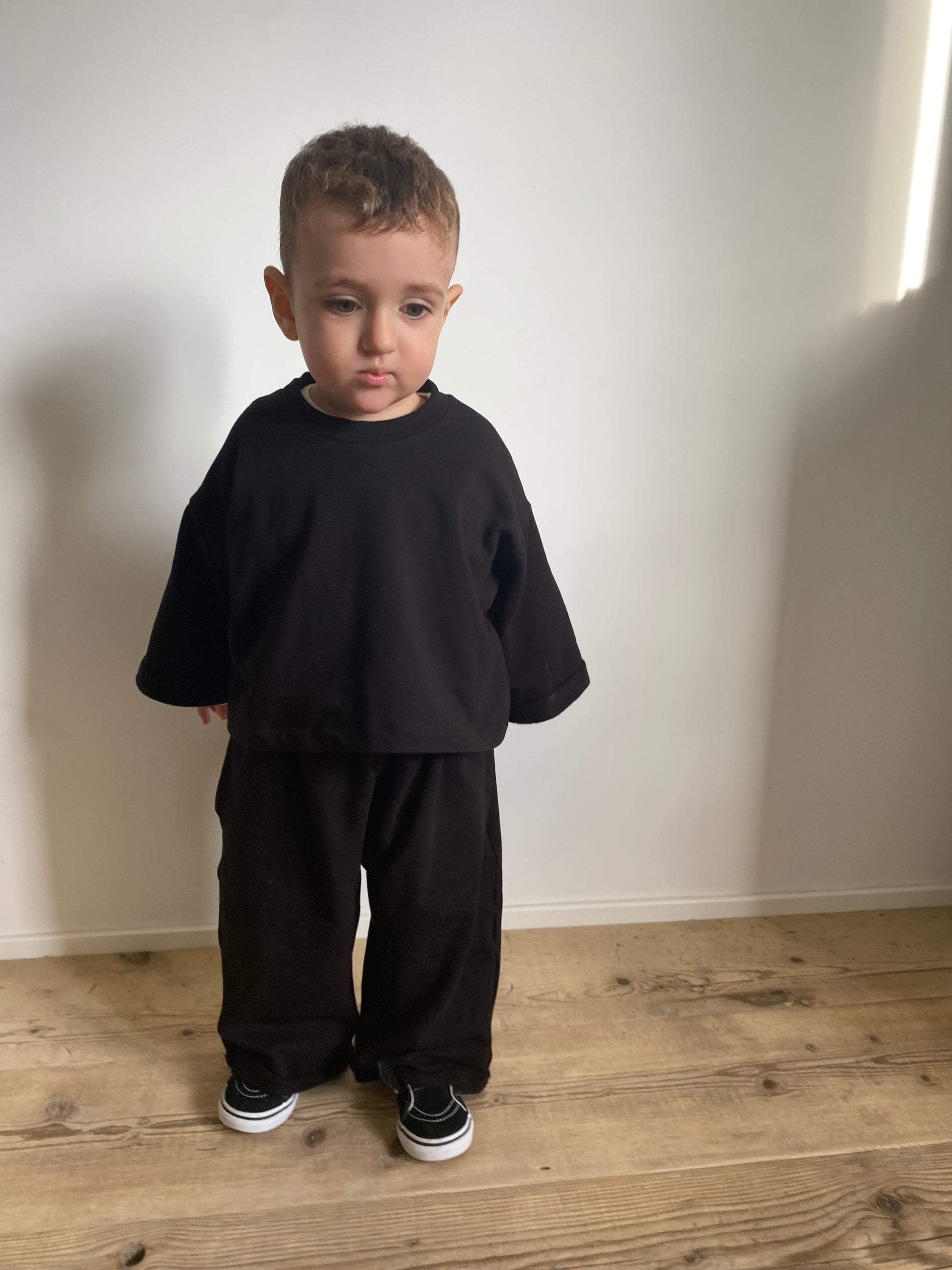 Pantalone unisex oversize colore nero in 100% cotone felpato.